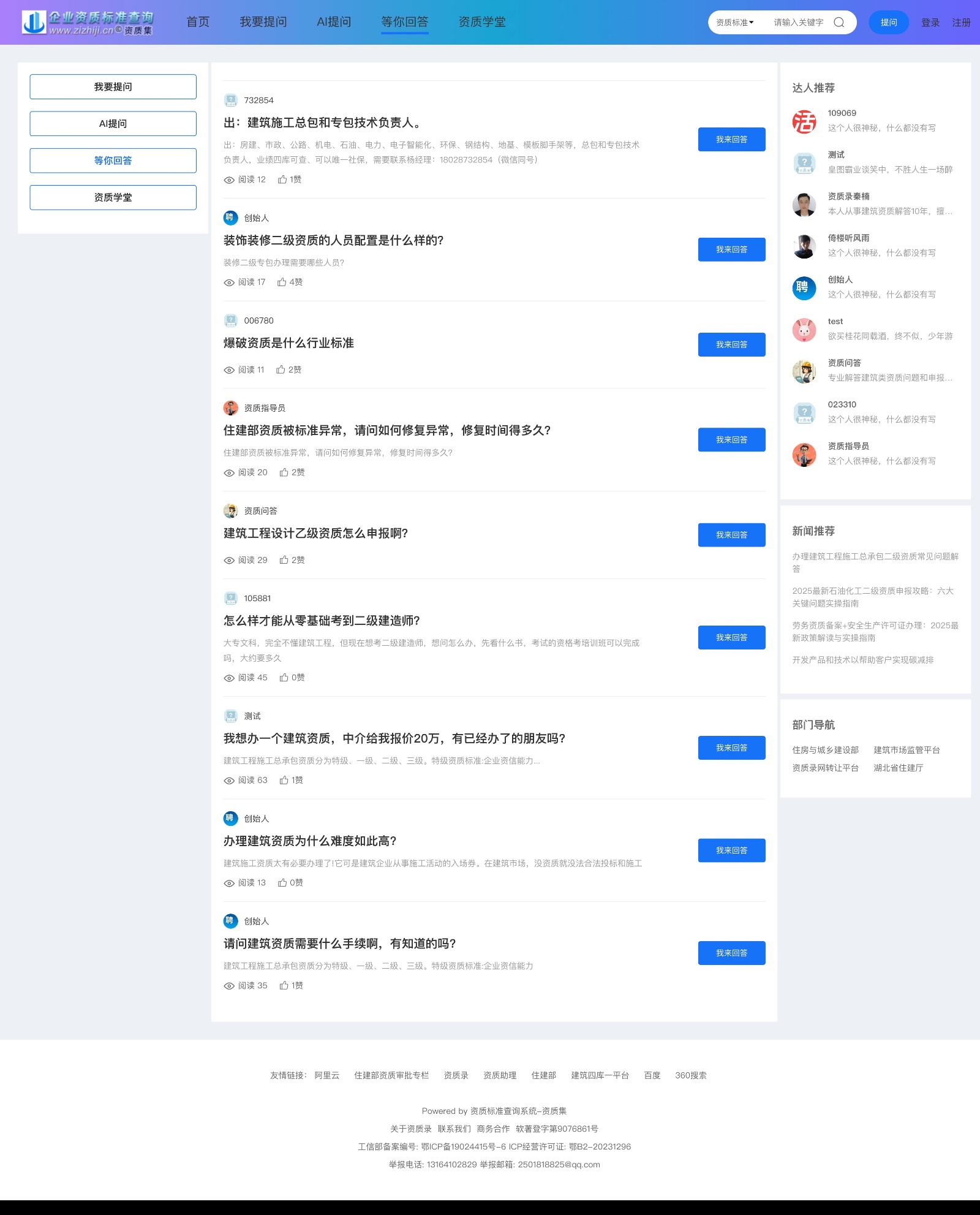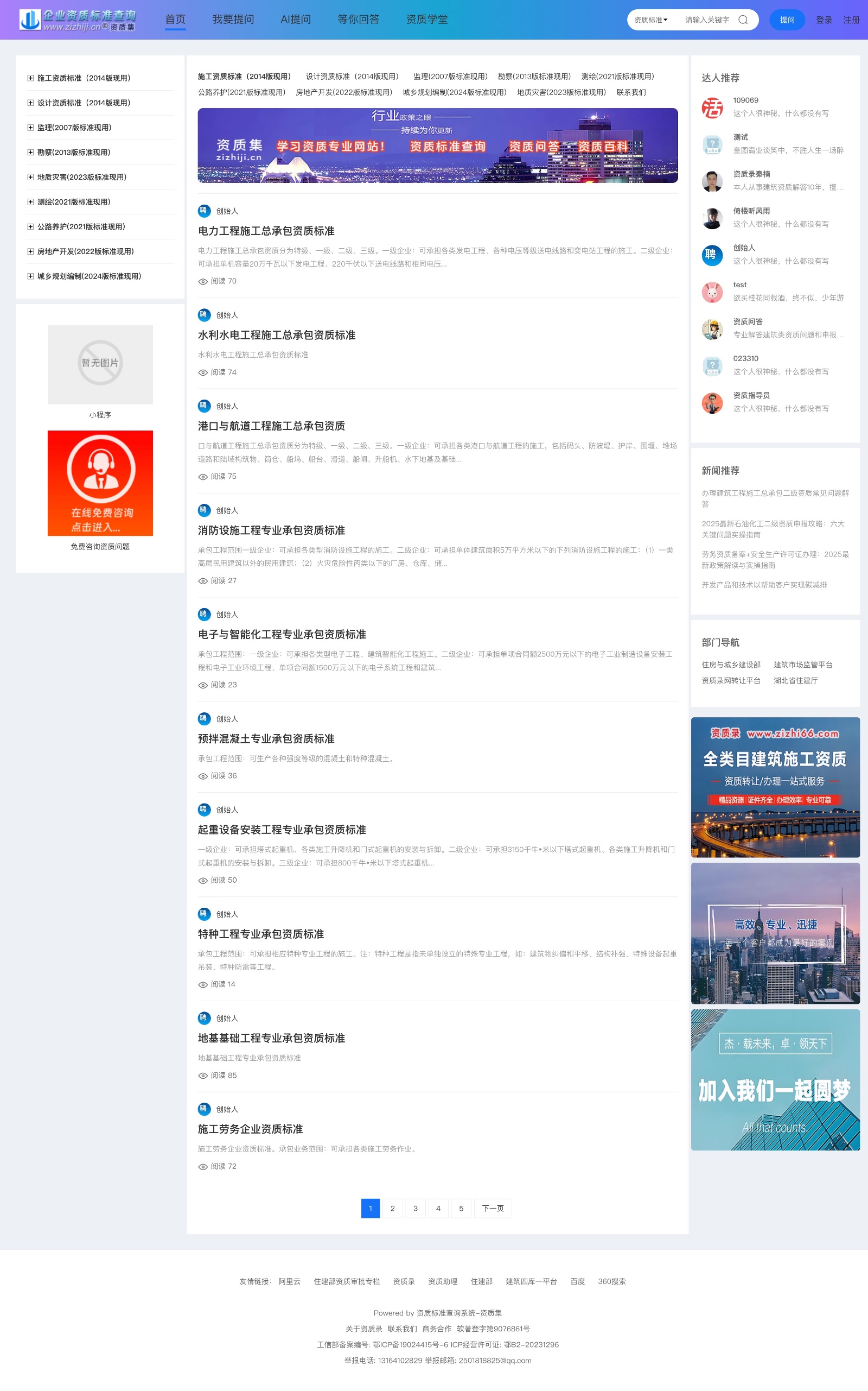 资质集资质标准查询系统是一个建筑类资质专门的平台,包含资质查询、资质学堂、资质交流社区、AI提问功能,是一个综合性行业网站。包含PC电脑版和微信小程序版本。已于近期交付上线。