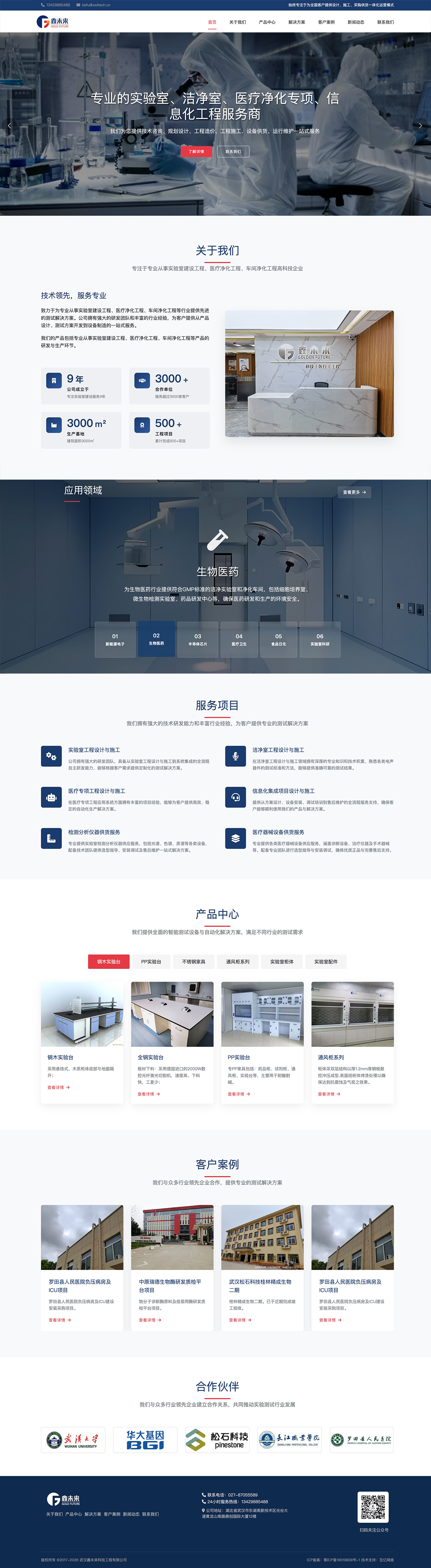 武汉鑫未来科技工程有限公司是一家专业从事实验室建设工程、医疗净化工程、车间净化工程的服务企业。由于旧网站建设时间比较久,无法匹配目前企业的形象,委托我司网站改版事宜。目前网站已改版完毕,完成上线部署。